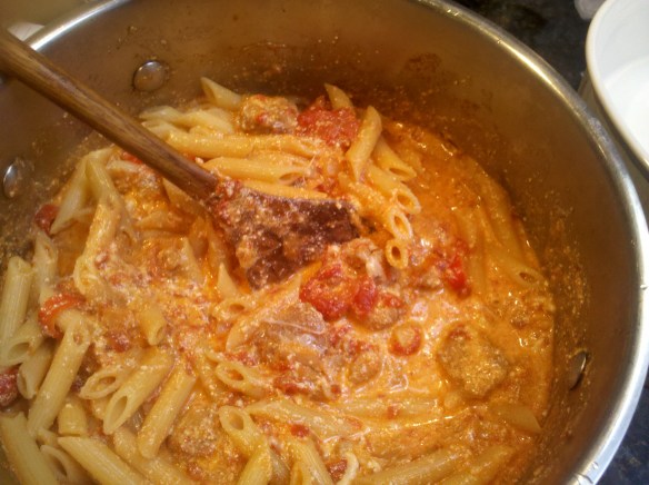 This will work equally well with ziti or penne, with sausage or without. Don’t skimp on the cheese, though!