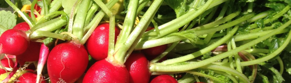 Today we harvested the first crop of radishes from our garden. I think I was about 30 years old before I could say I liked radishes, so if they’re not your thing right now, maybe they will appeal to you at some point in the future.They are so vibrant and beautiful that every year I find myself photographing them just for fun. But they are not just pretty to look at — radishes are filled with vitamin C, as well a group of compounds called isothiocyanates, which are shown to be effective against some types of cancer cells.