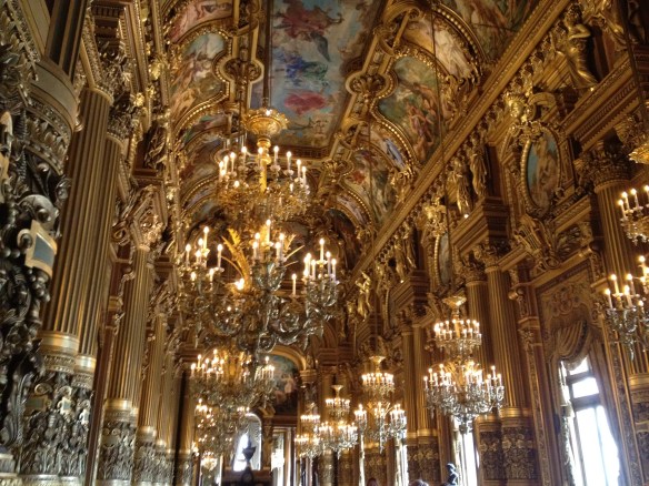 Based on yesterday’s “adventure,” I was hesitant to set out on my own for Palais Garnier, but I had no choice. I didn’t come to Paris to sit in a hotel room. I realized my modern life is filled with very few challenges. And even though finding a giant opera house less than half a mile from my hotel is not exactly Amazing Race material, I felt proud of myself. I met up with a group from the highly recommended Paris Walks, and I was able to enjoy the rich history of THE opera house which inspired Phantom of the Opera even more.