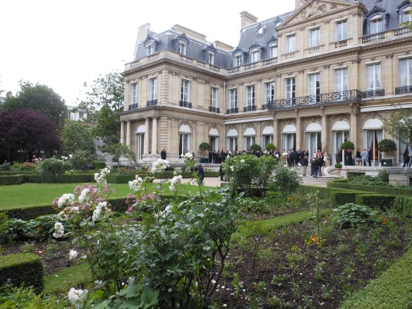 One of the highlights of my trip (and probably my life) was attending a reception at the US Embassy and meeting Ambassador Charles Rivkin and his wife Susan Tolson. The embassy feels like a country estate right in the middle of busy Paris. The interior was opulent (what isn’t opulent in France?) but the grounds and the gardens surprised me the most. The wine ranked up there with the best I ever drank, and the appetizers were innovative and — of course — beautiful and très petite. More on the food and wine in later posts, I promise.