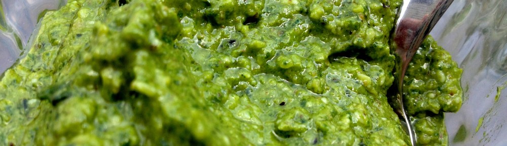 Several years ago, I found myself with a strange metallic aftertaste in my mouth. It was very strong and didn’t go away no matter what I did. Everything tasted awful for almost a whole week. (A smarter girl would have used this as an opportunity to diet, but I just kept right on eating.) Having earned a PhD from University of Google, my exhaustive research narrowed down the culprit to some pine nuts I had put in my salad (after eliminating my initial diagnosis of cancer and mercury poisoning, of course). Apparently, there is a phenomenon known as “pine mouth,” and it’s a taste disturbance caused from certain pine nuts usually originating from China (read this). I have enjoyed pine nuts for years with never a problem, so this syndrome can strike out of the blue. Interesting, eh? The good news is that pine nuts and I are back together after our four year breakup, but they are not needed for this particular pesto.