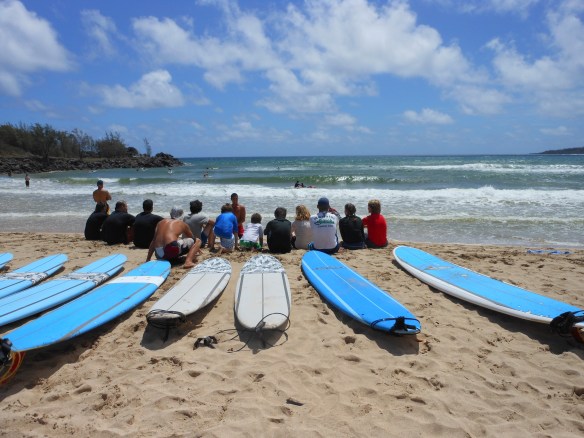 We didn’t travel halfway around the world just to sit on a beach, even though sitting on the beach is one of my favorite activities ever. We planned four main activities for the week: a helicopter ride, a surfing lesson, a Catamaran sail and snorkel, and a luau. Every one of these activities was well worth it and enhanced our understanding and enjoyment of Kauai, and I’m glad we did them, but these are not the experiences I will remember when I’m old.