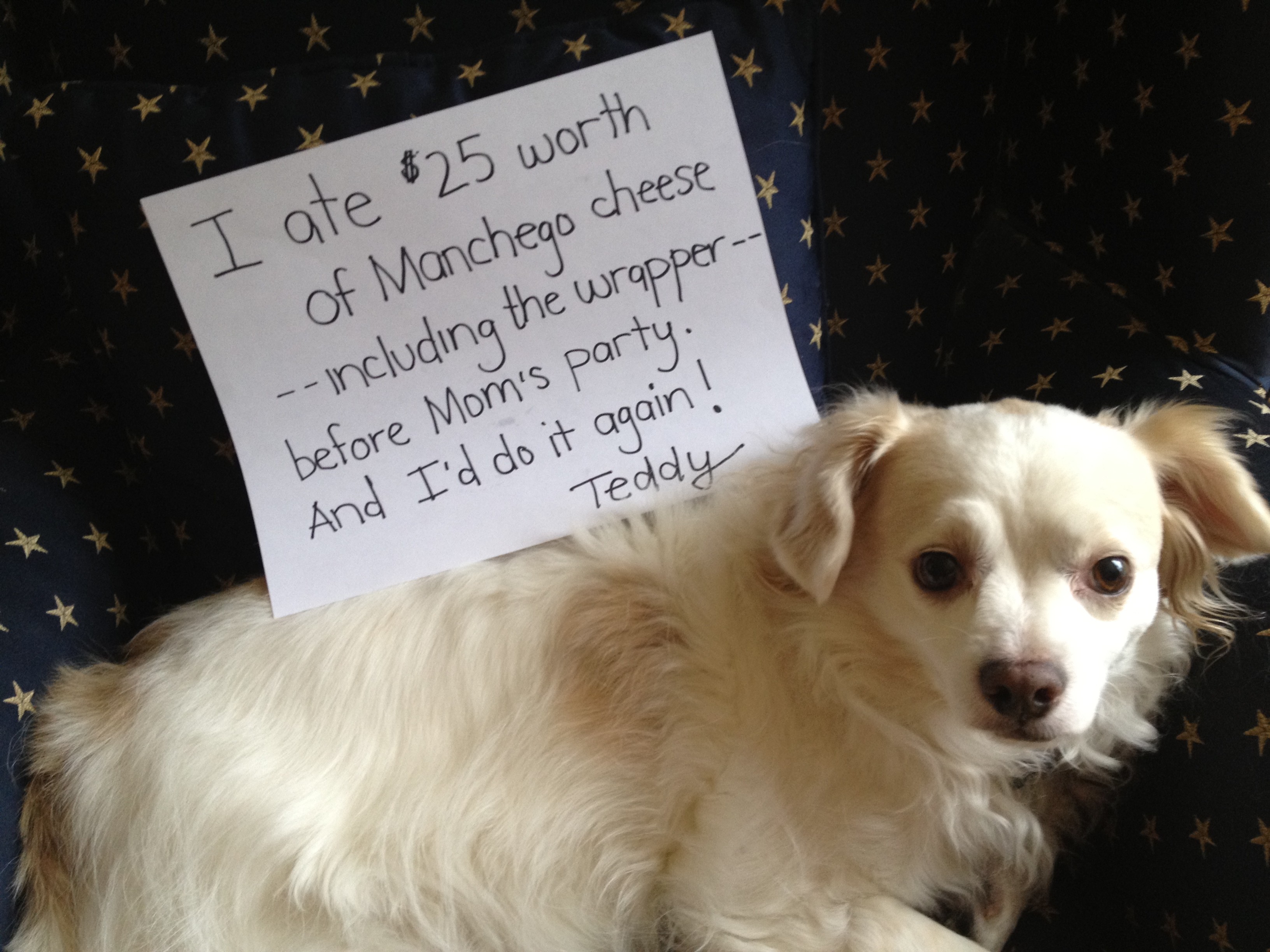 Here is my own naughty boy, Teddy. Don’t let his fluffy frou frou princess looks fool you; he is an Olympic level counter surfer and has taught us time and time again to never place food within six inches of the edge. Sometimes we forget.