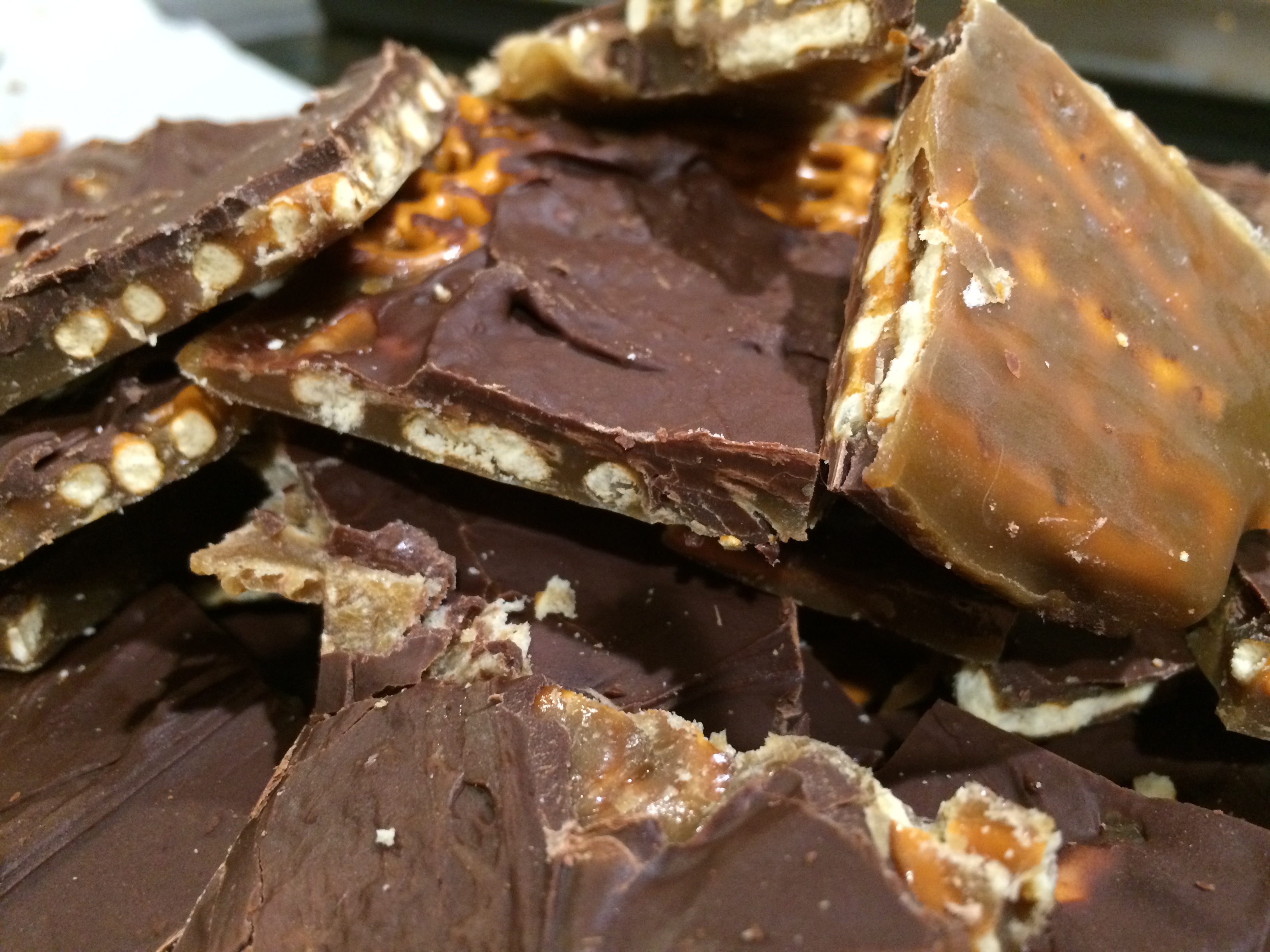 On the plus side, I’ve managed not to eat my weight in cookies this season. On the minus side, my creative time in the kitchen has really suffered. I miss cooking and I miss blogging. Eventually, I will figure out a way to make it all work out, but for now it’s a bit overwhelming. Last week, for example, I purchased Williams-Sonoma’s ridiculously overpriced Handcrafted Toffee as part of a hostess gift. Back in the day, I would sooner sell a kidney than pay thirty bucks for a small amount of toffee. But these days, with minimal spare time in the kitchen, I had to pony up the cash. I did, however, make a promise to myself to attempt to make my own toffee the next time I had a chance.