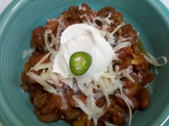 Ed convinced me to enter my chili in a chili cook-off, and I immediately got to work on concocting a recipe. After much tweaking and experimentation and a little heartburn, I came up with what I believed to be a very strong contender: chili with a decent thickness, sufficiently spicy but not make-you-cry-spicy, and layered southwestern flavors, both subtle and complex. I tried to incorporate the best elements of my favorite chili recipes, and I felt good about my entry.
