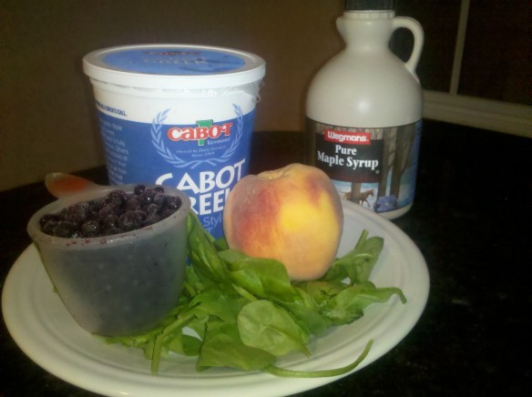 Combine all in blender until smooth. Add milk to thin it out if desired.